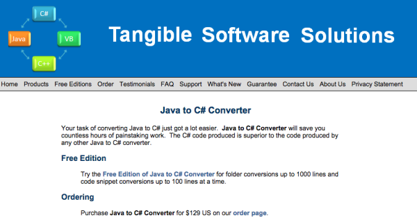 官方网站:http://www.tangiblesoftwaresolutions.com/Product_Details/Java_to_CSharp_Converter.html