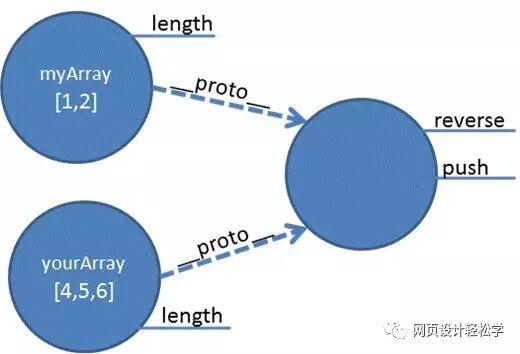 注意 myArray 的原型对象中有许多方法,包括那些在代码示例中调用的 push、pop 和 reverse 方法。因此,原型对象中的确包括 push 方法,但是 myArray 方法如何引用到呢?