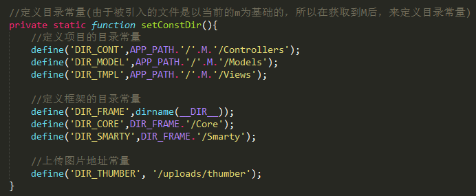 DIR_CONT表示控制器的目录常量、DIR_MODEL表示模型层的目录常量、DIR_TMPL表示HTML模板的目录常量