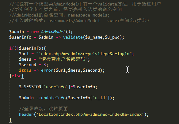 当PHP脚本执行到控制层时,通常会出现两种情况,一个中调用视图层显示某一个页面,一种是调用模型层对数据进行操作(增删改查)