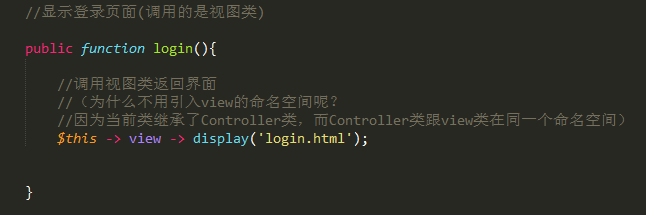 当调用视图层时,不用做任何其他操作,只需要通过$this调用view对象,然后调用display()方法,并且在display()方法中传递需要显示的html文件名即可。