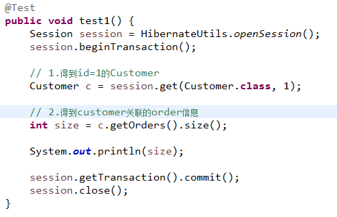 程序中size操作,那么就会发出select count(*) from Order where c_customer_id=?