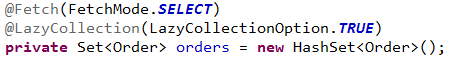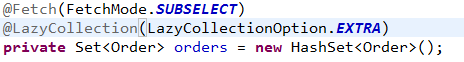 set上的fetch与lazyset上的fetch与lazy它主要是用于设置关联的集合信息的抓取策略。