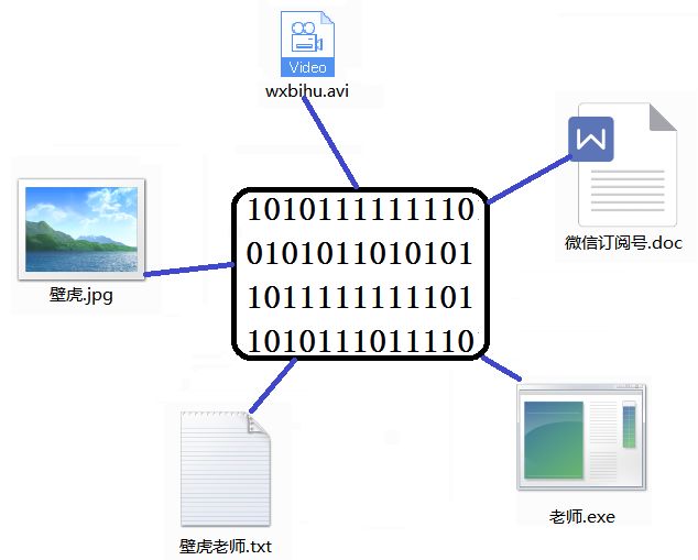 在我们眼中它们是:视频、图片、文本等不同的文件。