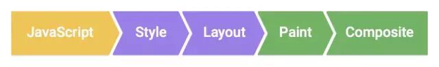 60fps就要求1帧的时间为1s / 60 = 16.67ms。浏览器显示页面的时候,要处理js逻辑,还要做渲染,每个执行片段不能超过16.67ms。实际上,浏览器内核自身支撑体系运行也需要消耗一些时间,所以留给我们的时间差不多只有10ms。这10ms里面需要做一些什么事情?在Chrome的开发者文档Rendering Performance里面提到这个流程: