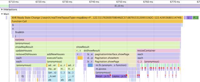 其一的showMapResut就花费了22.65ms,它又调了removeOldHouses和addNewHouses,这两个各自的时间约为11ms。
