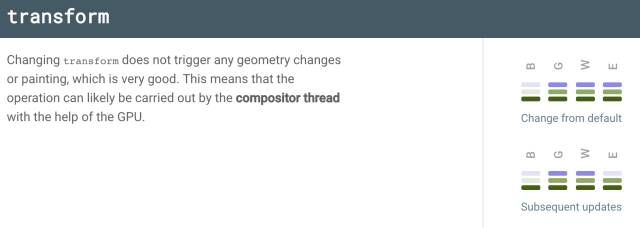 style改了transform属性,在blink和edge浏览器里面不需要layout和paint,如下面css trigger的说明: