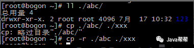 cp -r ./abc ./xxx #复制目录必须使用 -r参数