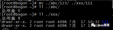 mv ./abc/123/ ./xxx/111 #移动一个空目录 或 一个文件