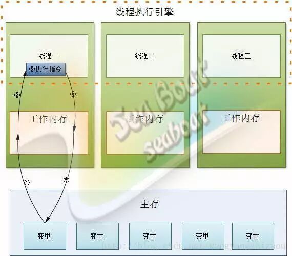 有了上面的知识再往下探索就水到渠成了,如果把Java内存模型与多级存储机制类比将发现为了提高性能java引入了工作内存的概念,提高了线程执行时读取数据的速度,这样就可以把java模型中的主存和工作内存分别于RAM和高速缓存或寄存器对应起来,每条线程的工作内存预先把需要的数据复制到高速缓存或寄存器(但是不保证所有的工作内存的变量副本都是放在高速缓存,也可能在RAM,具体的还要看JVM是如何实现的),这样在多线程并发时性能得到保证。当然寄存器和高速缓存由于成本原因存在容量大小限制的问题,这个也是考验JVM实现的一个难题。