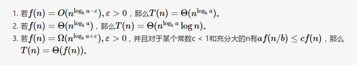 设常数a >= 1,b > 1,f(n)为函数,T(n)为非负整数,T(n) = a T(n / b) + f(n),则有: