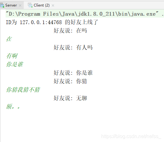 System.out.printf("ID为 %s:%d 的好友上线了%n",clientAddress.getHostAddress(),clientPort);