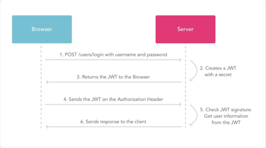 答:客户端发起请求的时候,传递给服务器一个jwt token,jwt token分为三部分:头部(header)、载荷(payload)和签证(signature)。服务器在收到这个token的时候将前两部分header和payload使用header中的加密算法HMACSHA256进行加盐SECRET组合加密,然后将生成的签名信息与jwt token中的第三部分signature进行对比,如果一致,说明token合法,否则就是伪造的。因为生成签名信息的SECRET只有服务器知道,所以相对来说很安全。