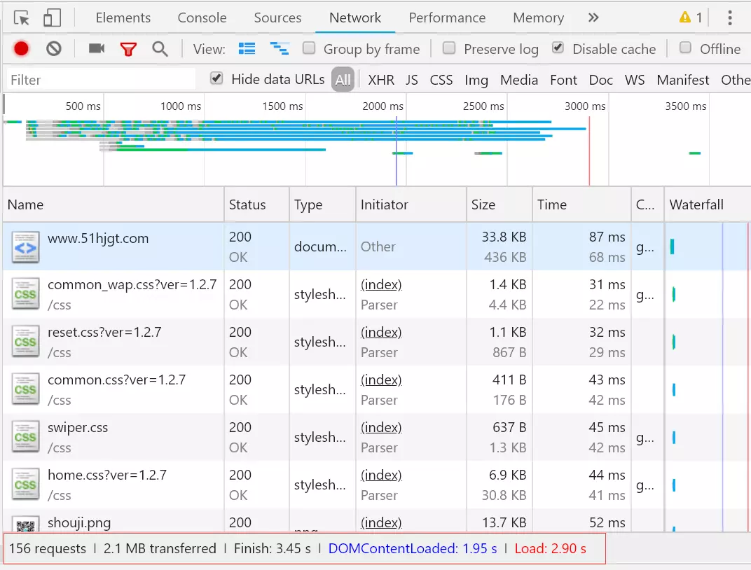 直接看顶部的截图,嘤嘤嘤,fully loaded time居然去到16S了,这肯定有问题,接着继续看: