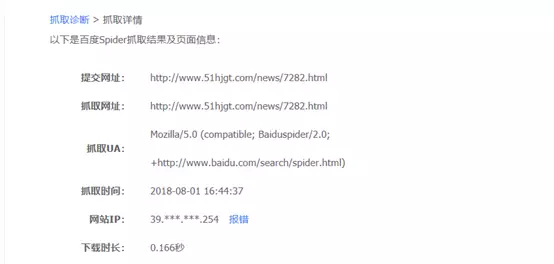 从日志上看,基本耗时都在18S,也读是百度爬虫那过来的; 既然都有日志了,那就模拟下看看是不是真要那么久,这里的模拟爬虫用的是百度熊掌号自带的工具: