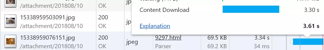只需要关注最下面的下载时长:0.166s,重复多几次,依然如此; 这个后台的日志不一样,那就说明,这个问题不是必现的,而且有特定场景导致的; 从后台的日志上看,刚爬了几次的日志,也的确跟百度上显示的类似,那说明百度上的时长是可信的: