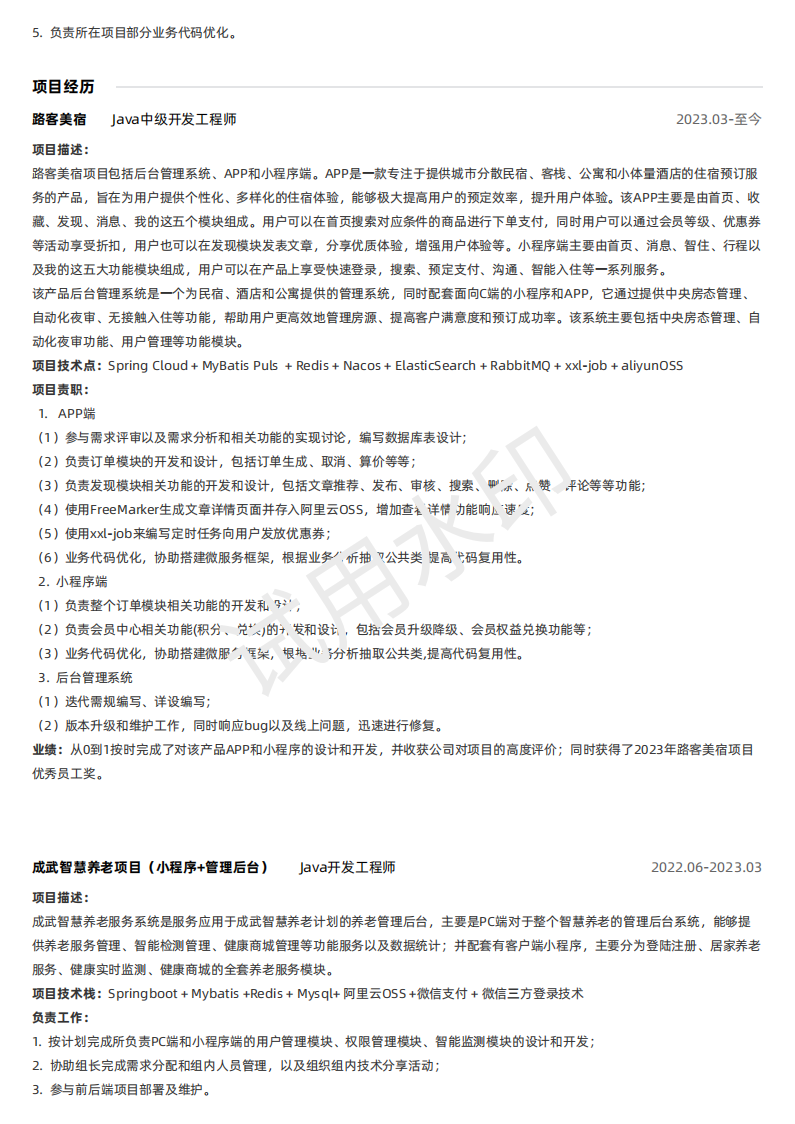 3.单体架构项目学习阶段 该阶段需要学习2-3个基于Springboot的单体项目,同时在项目中应该学习jwt、WebSocket、微信支付、阿里云OSS等知识。推荐的参考项目有《tlias系统》、《苍穹外卖》、《中州养老》、《汇客CRM》等。