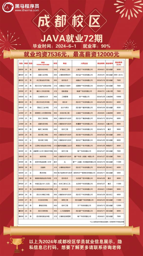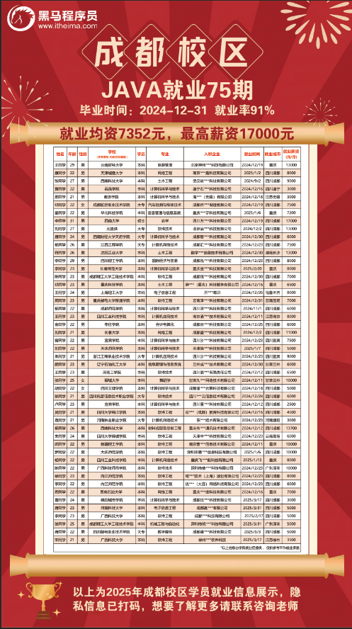 按照上面我分享的方式去学习,去写简历,去找工作,成功就业已经是大概率事件了。可能有人会说你能不能把你所带班级的就业情况公布一下,当然可以!如下是去年毕业的所有班级,以班级为单位统计的真实对口就业率。
